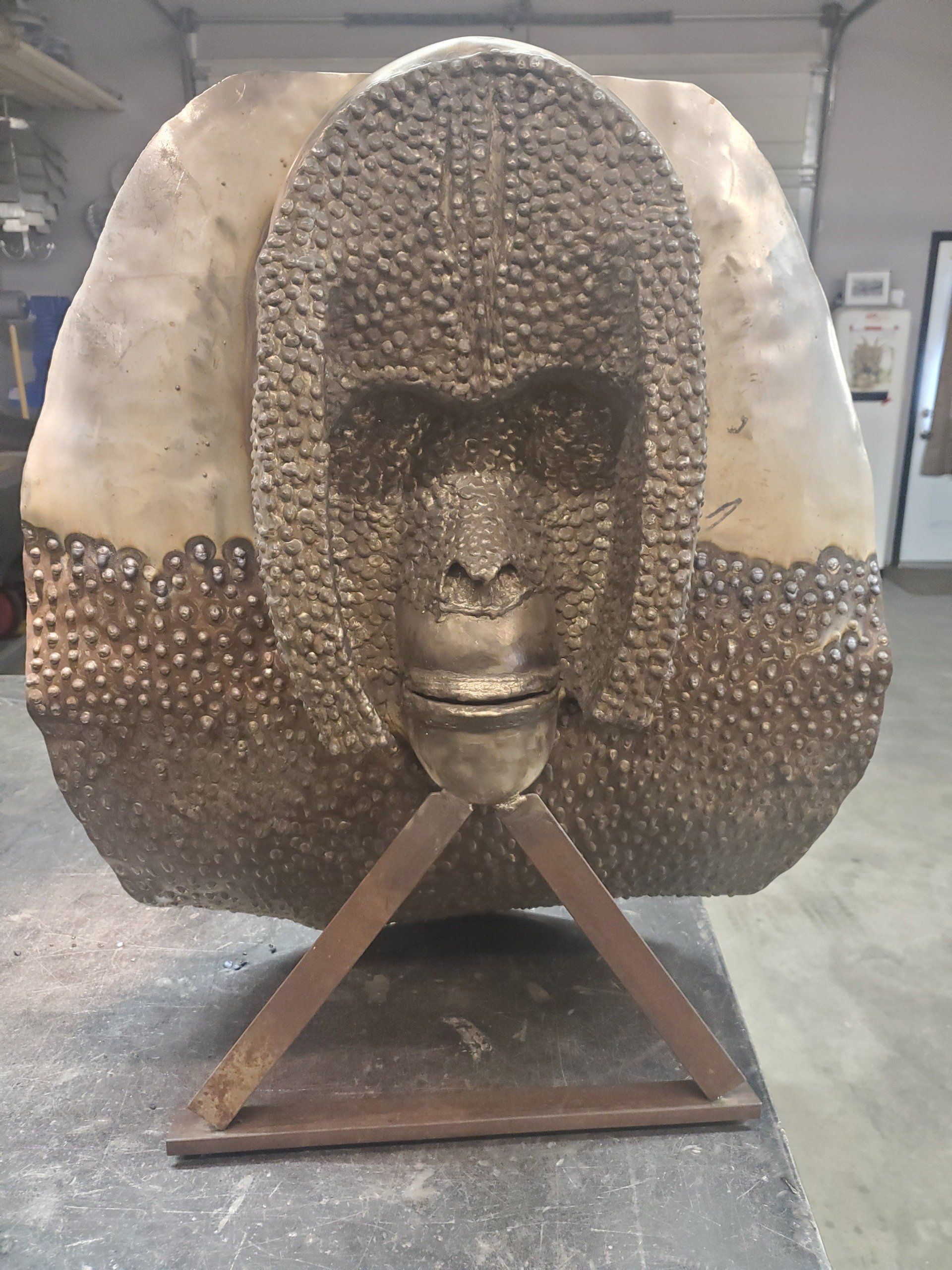 Here is the progression of the face of the Orangutan. I've formed the metal and am adding the texture to build out his face. the eye sockets are a very difficult step.